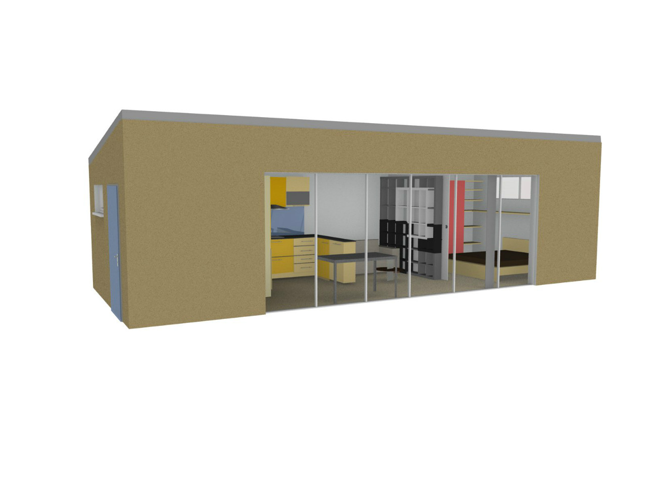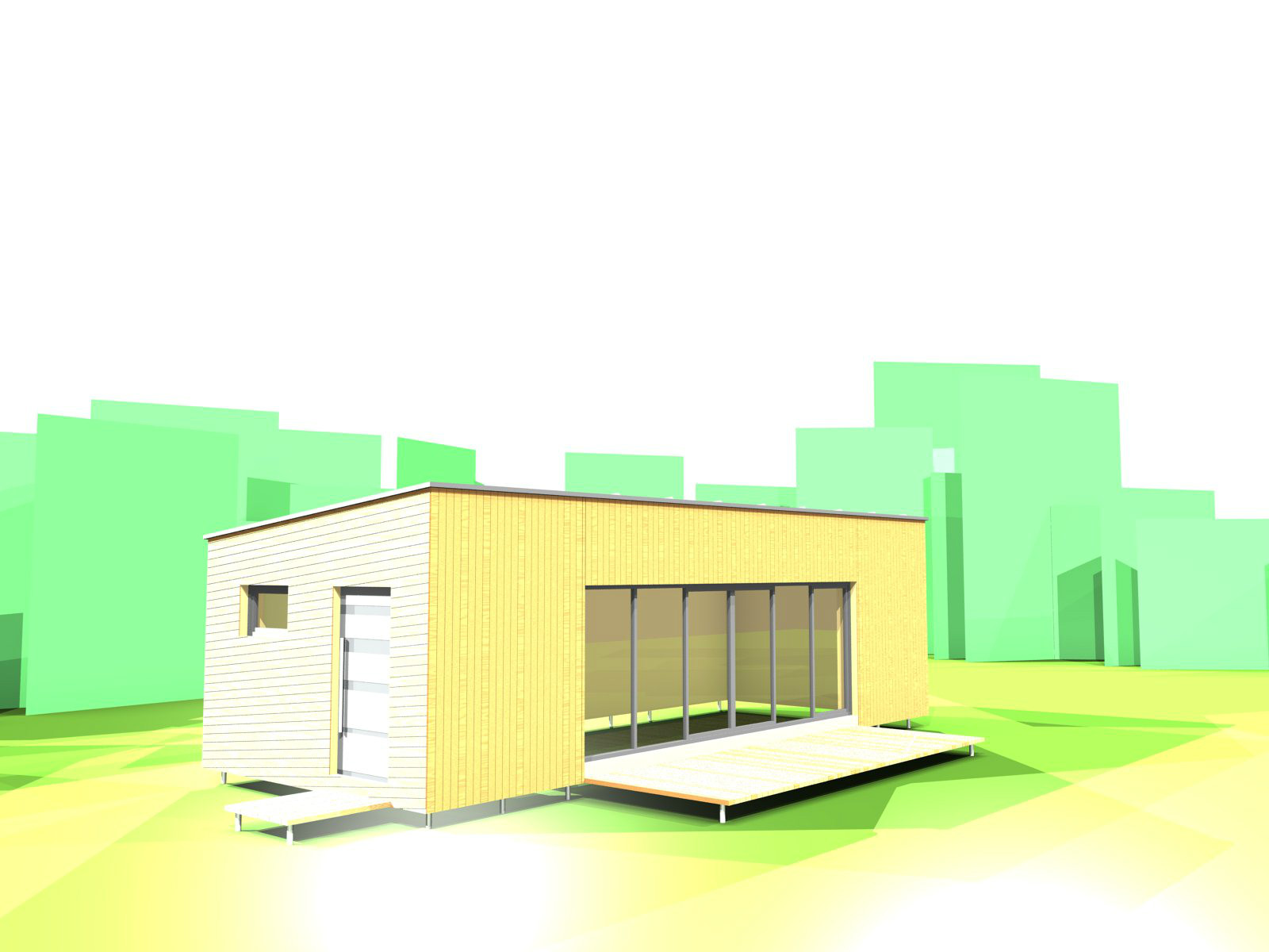 mobilní dům pro dvoučlené rodiny, samotáře, chata, soběstačný dům - základní jednotka modulu s obytnou plochou 40m2